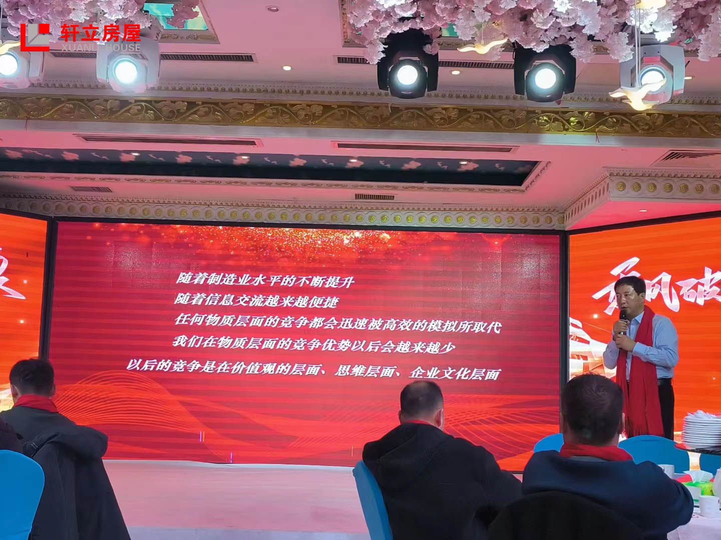 陳總在致辭中對當下的市場環(huán)境進行了深入分析,他指出,當前輕鋼建房市場正面臨著復雜多變的形勢。隨著國內外政策的調整和消費者需求的不斷變化,市場競爭愈發(fā)激烈,行業(yè)洗牌加速。面對這樣的市場環(huán)境,陳總認為,軒立必須保持清醒的頭腦和敏銳的市場洞察力,緊跟市場變化,不斷調整和優(yōu)化自身的戰(zhàn)略布局。他強調,要始終堅持客戶至上、品質為本的經營理念,不斷提升產品和服務的質量,以滿足客戶日益多樣化的需求。同時,陳總也指出,面對市場競爭和變化,我們必須不斷學習和創(chuàng)新,加強內部管理和團隊建設,提高自身的核心競爭力。只有這樣,才能立于不敗之地,實現(xiàn)軒立的可持續(xù)發(fā)展。